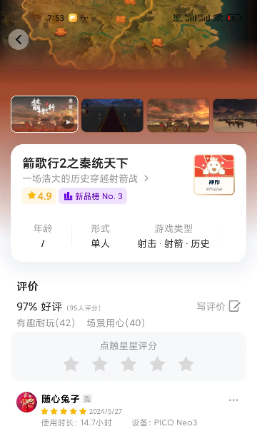 剑歌行2之秦统天下》是一款以秦始皇统一中国为历史背景的射箭游戏。贯穿秦统一十年间,20场重大战役。游戏将带领玩家穿越回波澜壮阔的战国时代,体验秦始皇统一六国的壮志豪情,征战四方,征服列国,书写属于自己的传奇。